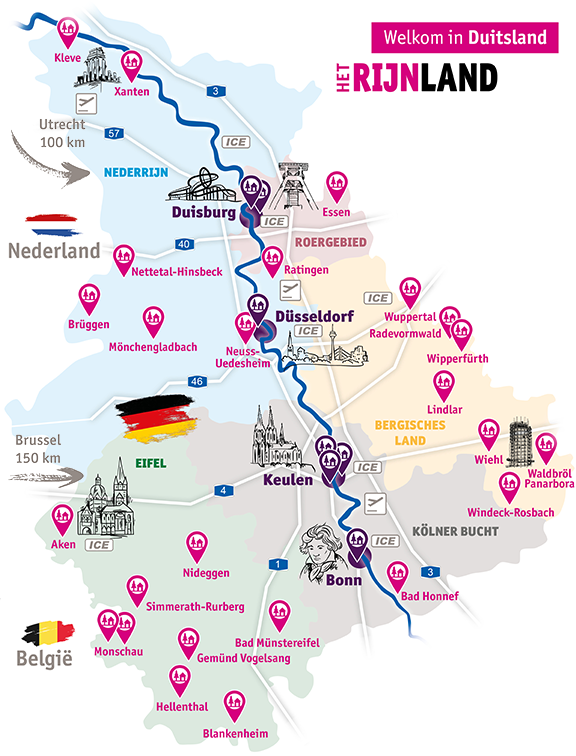 Wie het Rijnland wil ontdekken, vindt een internationale regio vol landschappelijke en culturele diversiteit met een unieke mix van ervaringen: UNESCO-werelderfgoed, pulserende metropolen, hippe industriecultuur, prachtige natuurgebieden, Romeinse geschiedenis en internationale ontmoetingsplaatsen. Overal waar iets te beleven valt, zijn de 32 jeugdherbergen en City-Hostels in het Rijnland meer dan een verblijfplaats.
